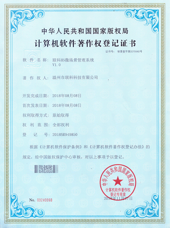 聯(lián)科教培行業(yè)智慧運(yùn)營(yíng)系統(tǒng)V1.0登記證書(shū)(2022R11L2324133)