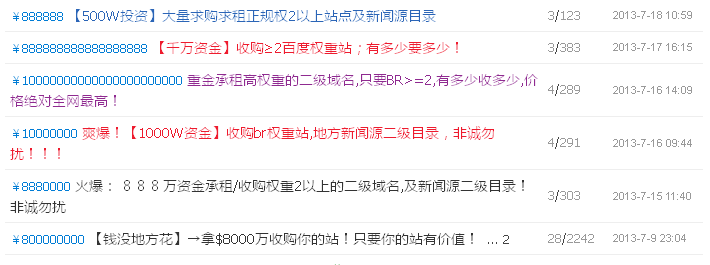2013年7月19日百度網(wǎng)頁搜索反作弊團(tuán)隊(duì)對(duì)于一些論壇出現(xiàn)大量的高價(jià)收購二級(jí)域名或目錄的信息,絕大部分被用于作弊,例如:太原新聞網(wǎng),出售二級(jí)目錄被用于作弊。對(duì)于此類出售二級(jí)域名二級(jí)目錄的問題,將進(jìn)行嚴(yán)厲的懲罰,株連至整個(gè)站點(diǎn),直接屏蔽并清理出百度新聞源。
