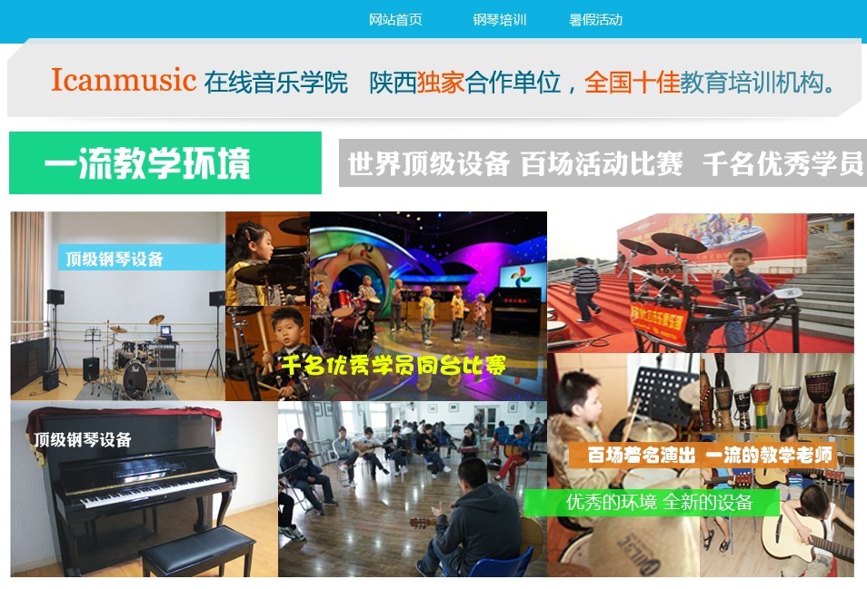 下面我用真實案例跟大家分享一下。第一個問題:我們賣的是什么?在導航下方第一句中已經(jīng)說明我們是一家音樂培訓機構。第二個問題:為什么要信任我們?全國十佳、世界頂級設備、百場活動比賽、千名優(yōu)秀學員,這簡短的幾句話對于一個外行人來說第一印象是這家結構很有實力,除此之外我們還可以從圖片中看到中央電視臺大風車的圖片更增加了用戶的信賴感。第三個問題為何要選擇我們?學習音樂本應是一件快樂、輕松的事情,但是很多學校搞的非常痛苦、刻板而從上圖中可以看教學環(huán)境清新舒適,學員活潑充滿激情。這樣就很好的解決了營銷的三大問題,但我覺得應該在上面放一些老師與明星的合影或者得獎的照片效果會更好,