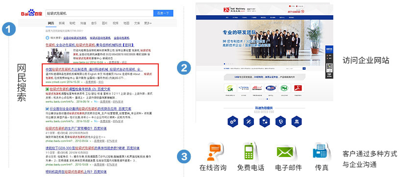 我們通過研究百度、360等搜索引擎的排名規(guī)則,然后通過對網(wǎng)站優(yōu)化調(diào)整、網(wǎng)站外鏈建設(shè)、網(wǎng)站內(nèi)容建設(shè)等方法,提升網(wǎng)站排名,使我們的潛在客戶在百度等搜索引擎上搜索產(chǎn)品關(guān)鍵詞時,我們的網(wǎng)站顯示在搜索結(jié)果的首頁。