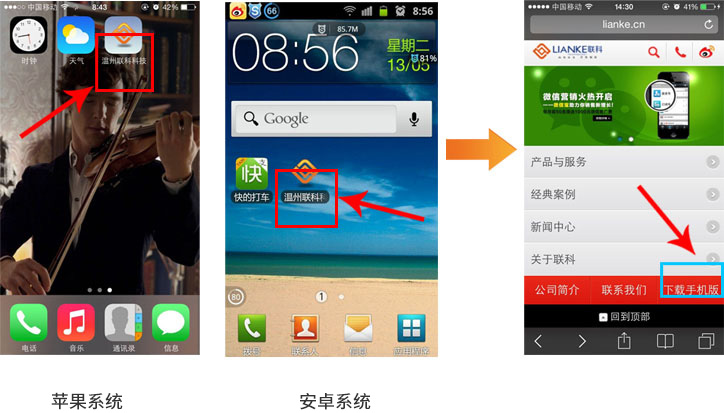 用戶通過下載手機網(wǎng)站APP和圖標,安裝在手機桌面上,即可快速訪問手機網(wǎng)站。